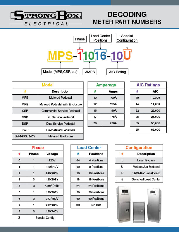 Meter Pedestal Part Number Decoder